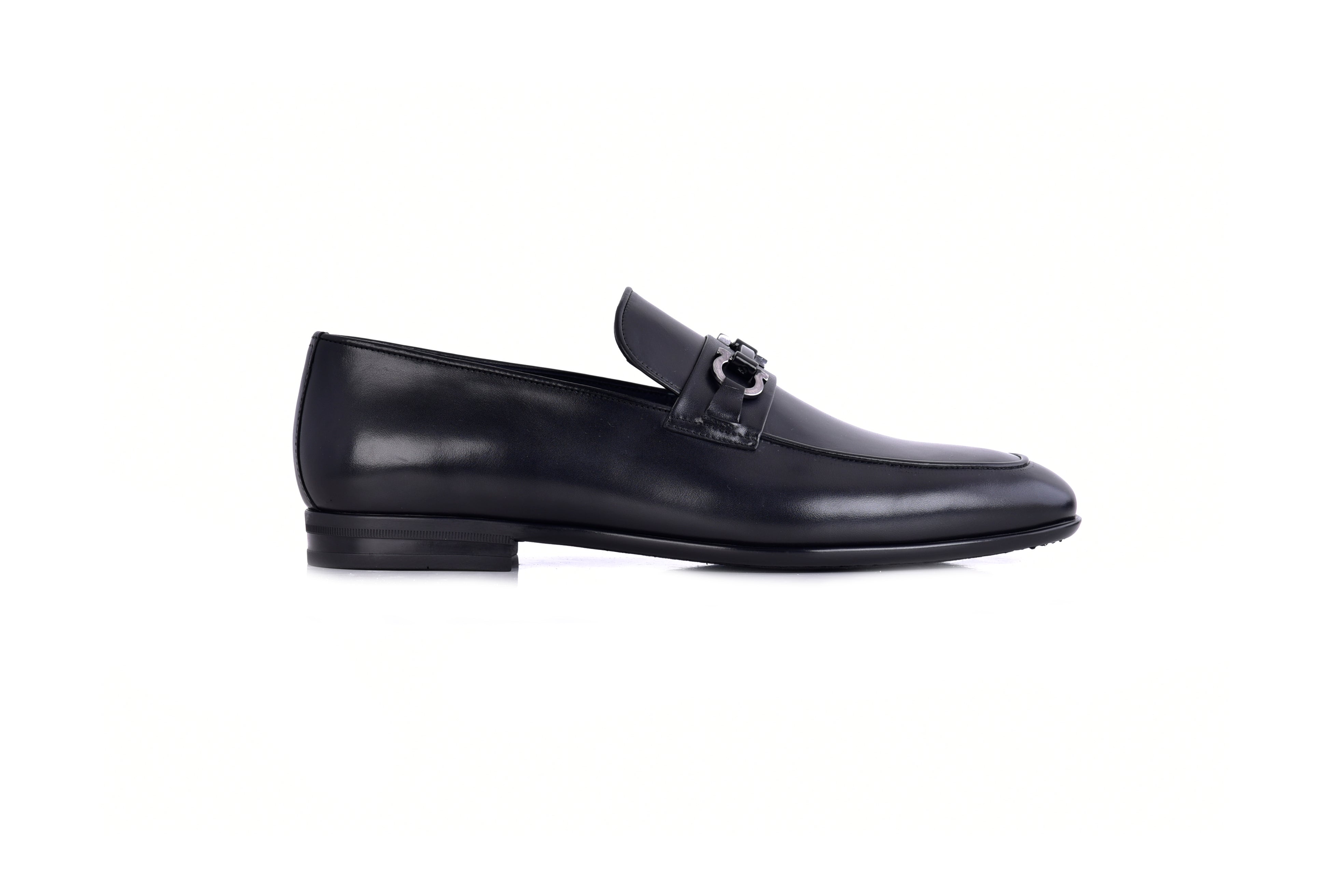 Elevate your everyday footwear with this sophisticated buckle loafer in classic black. Designed with refined craftsmanship, this slip-on style combines timeless elegance with modern comfort, making it an essential addition to any professional or casual wardrobe. The signature buckle detail adds a polished touch, while the streamlined silhouette ensures versatility across occasions. Whether paired with tailored trousers or weekend wear, this loafer delivers understated luxury and enduring style.