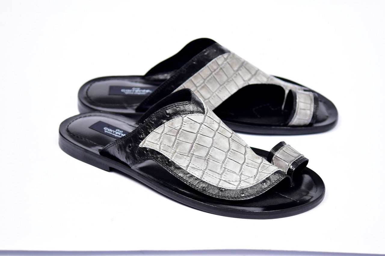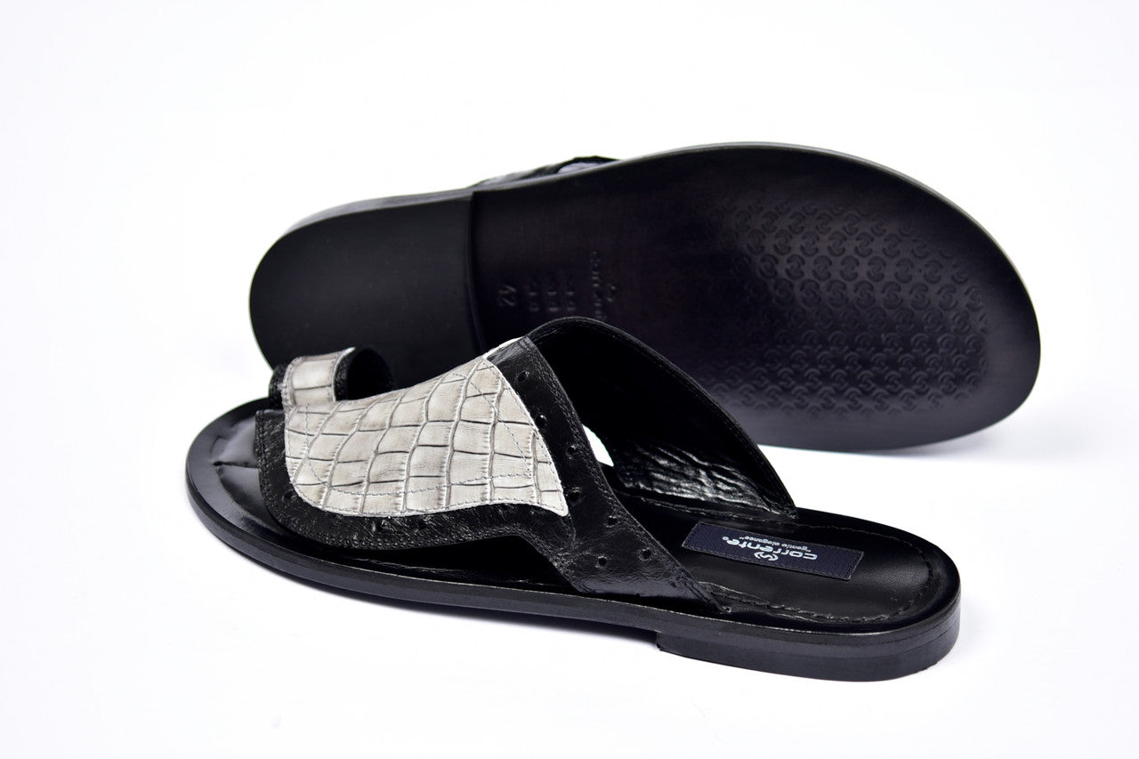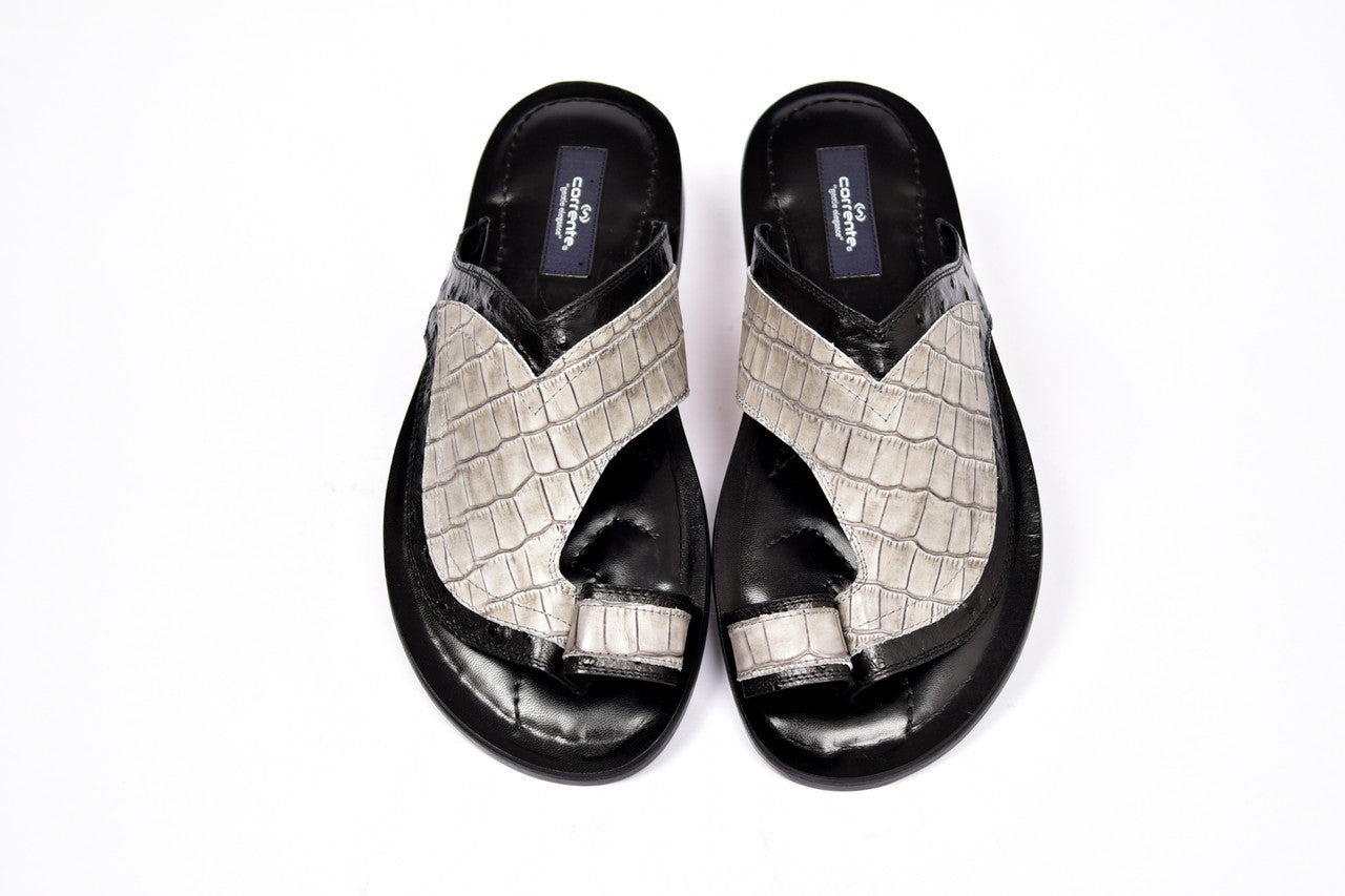Elevate your summer style with our C0061-5831 Sandal in Black-Grey. Featuring a chic croco print toe ring design, these sandals add an elegant touch to any outfit. Show off your sophistication and taste with our premium quality sandals.