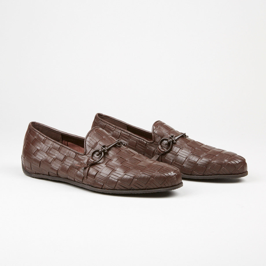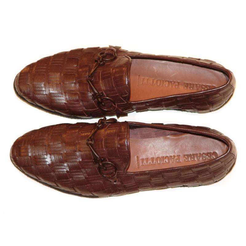 Cesare Paciotti 47710 Brown Hand Woven Loafer With Dager Buckle