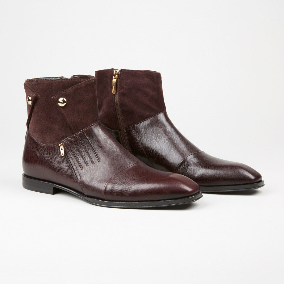 Cesare Paciotti 48203 Suede & Leather Zipper Boot, Bordo