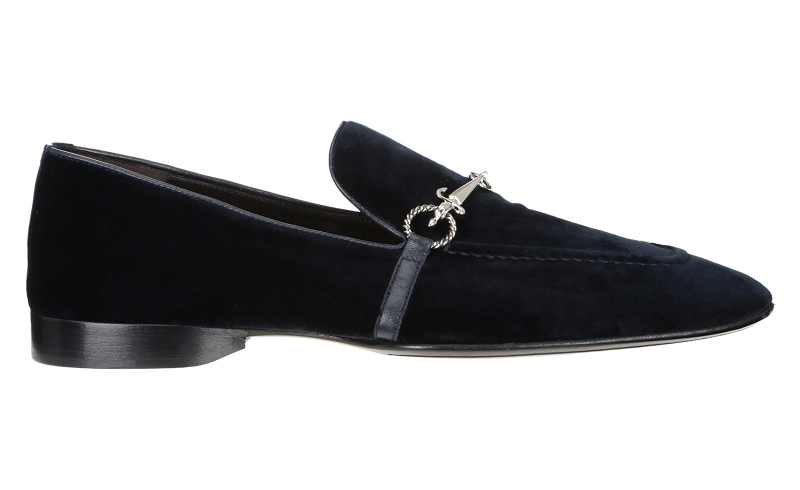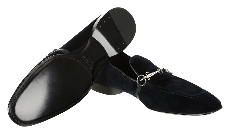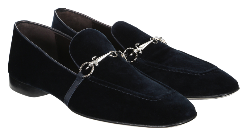 Cesare Paciotti 48361 Navy Blue Velvet Loafer With Dager Buckle