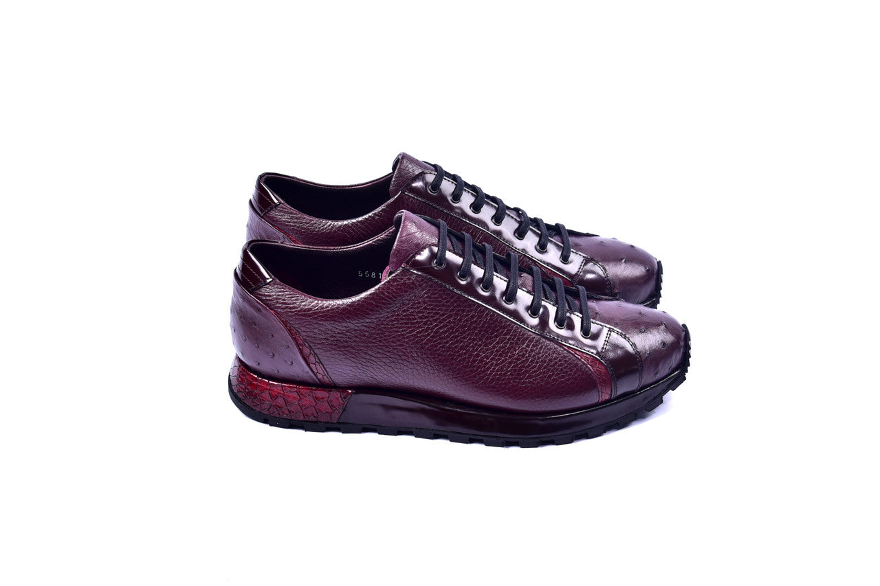 C0013041-5581 Genuine Ostrich Fashion Sneaker- Burgundy