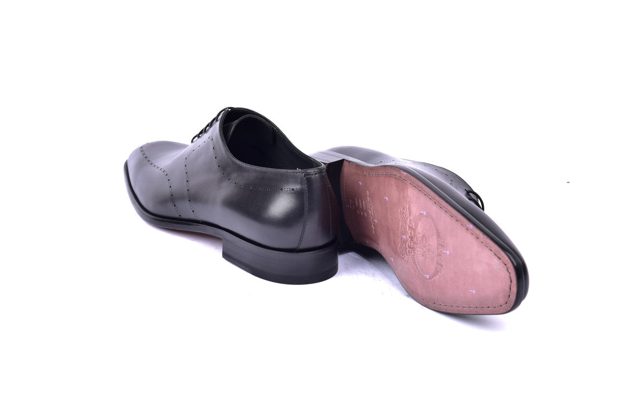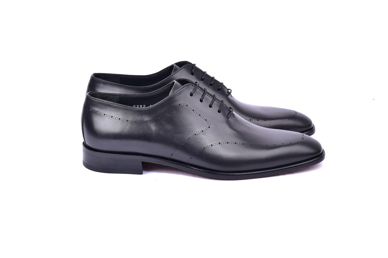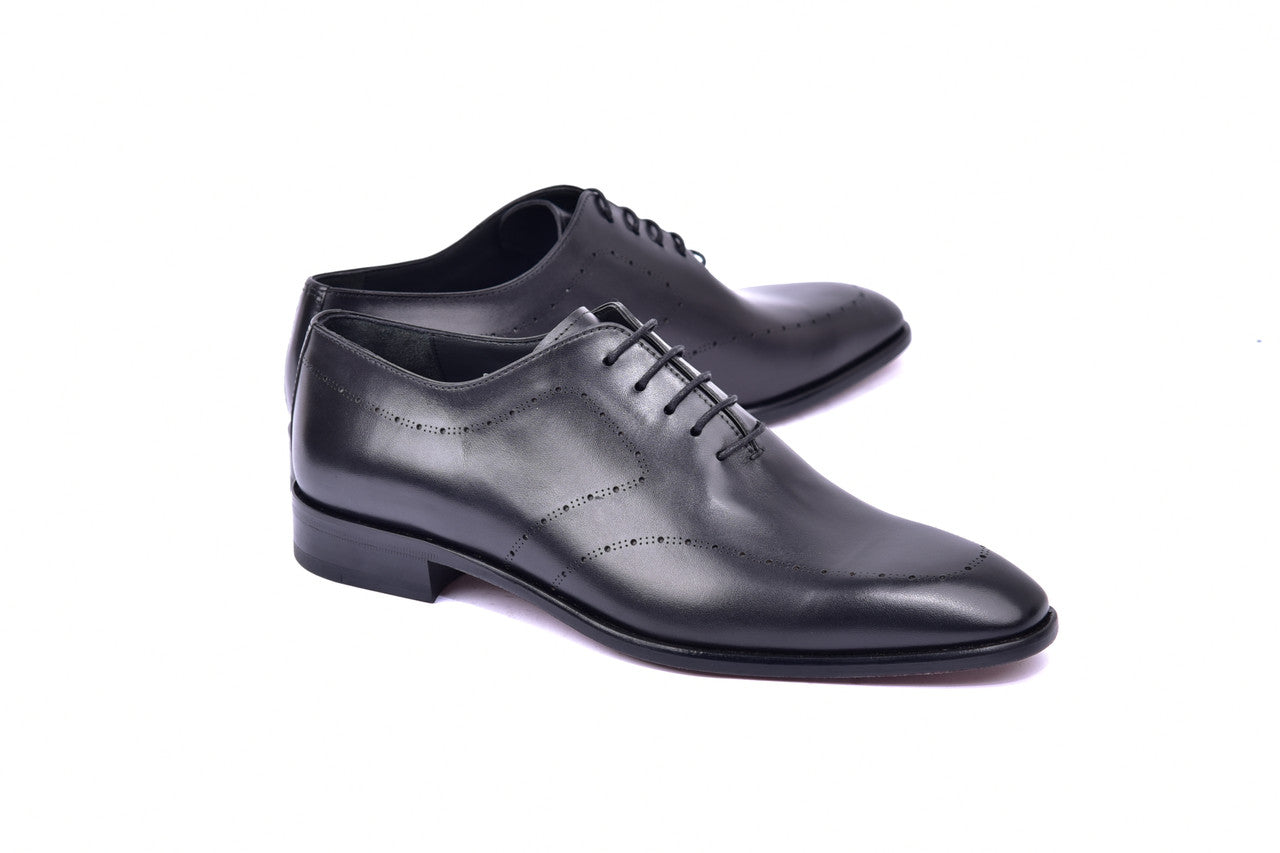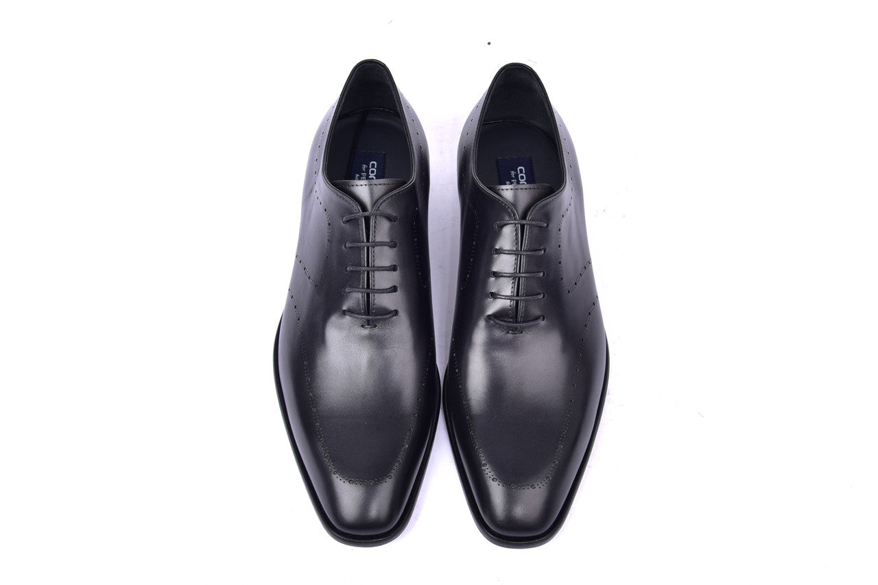 Indulge in luxury with the Corrente C0014020- 6292 Lace Up shoes in classic black. Expertly crafted from one piece of premium calf skin, these shoes feature a unique laser design on the laces that adds a touch of sophistication. Step out in style and elevate any outfit with these elegant lace-ups.
