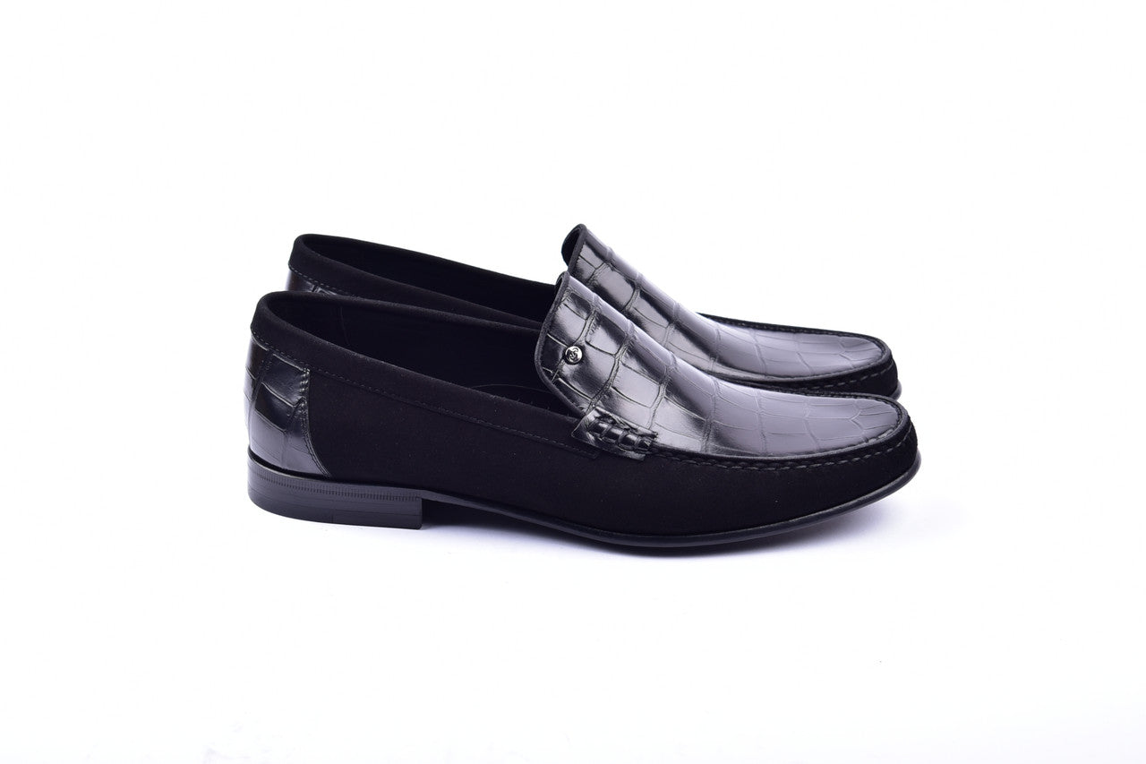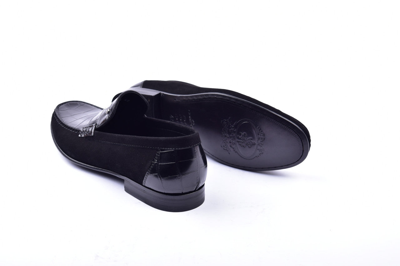 C0014057- 3898C Suede and Crocodile Print Vamp- Black