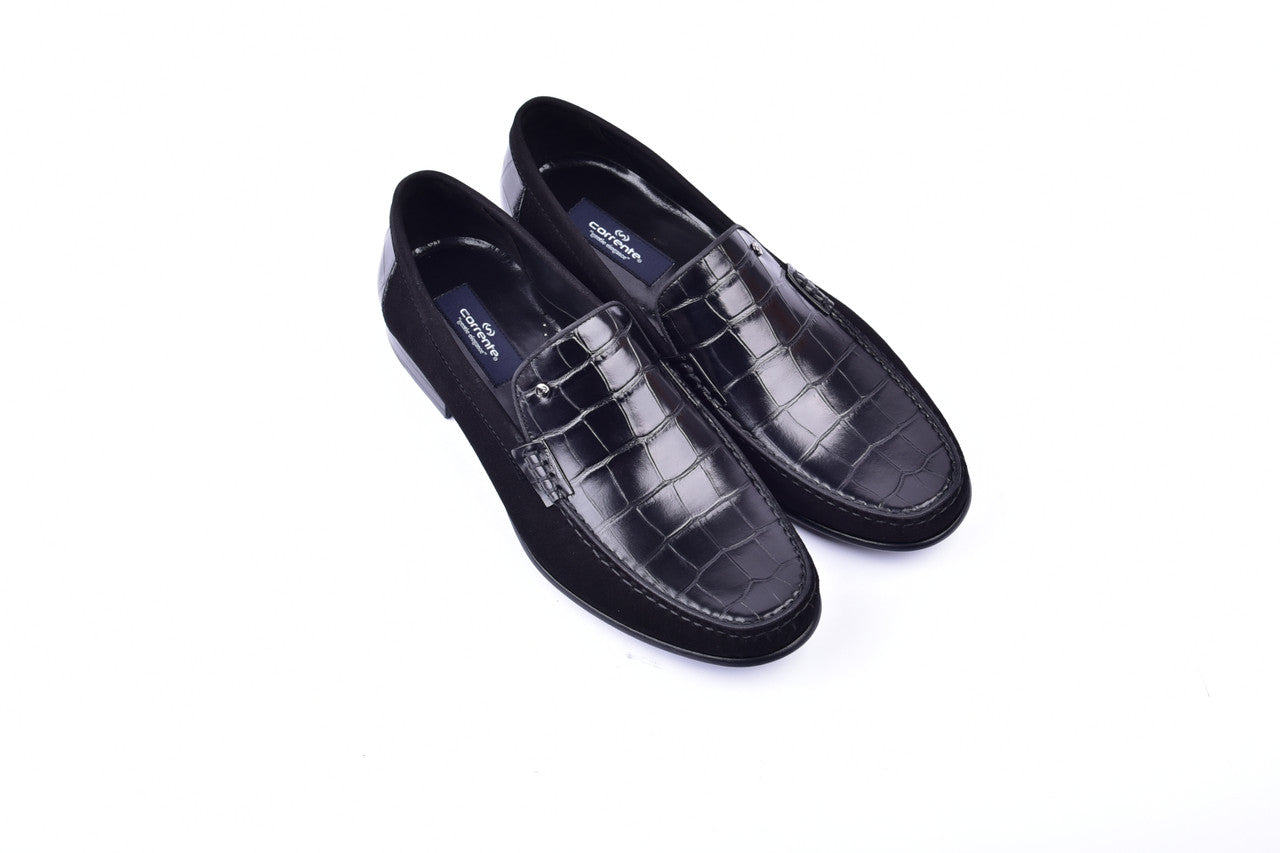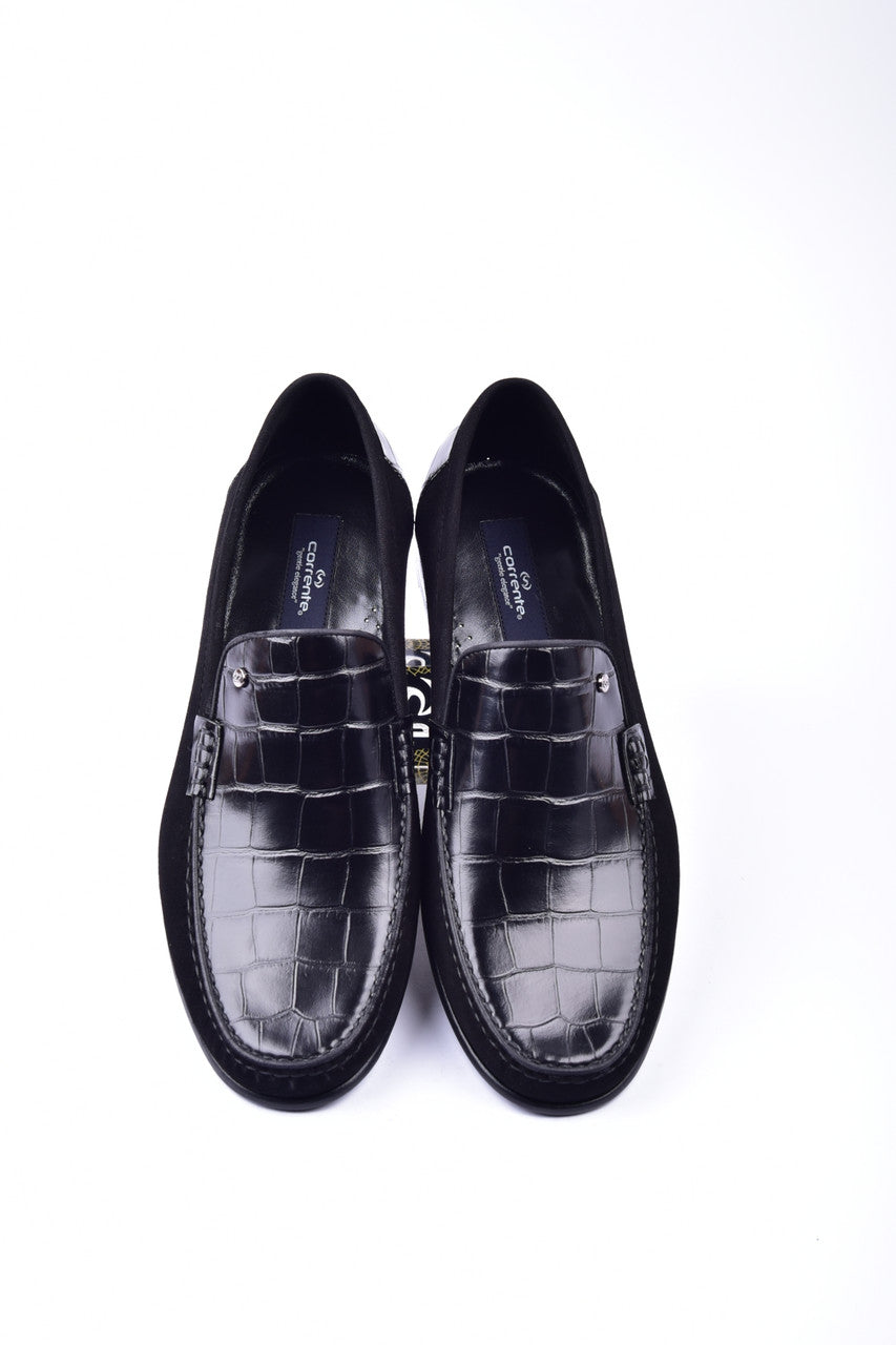 Indulge in luxury with the Corrente C0014057- 3898C loafers. Hand sewn with premium suede and adorned with a sophisticated crocodile print vamp, these shoes exude elegance and exclusivity. Perfect for any formal occasion, these loafers elevate your style and provide unparalleled comfort.