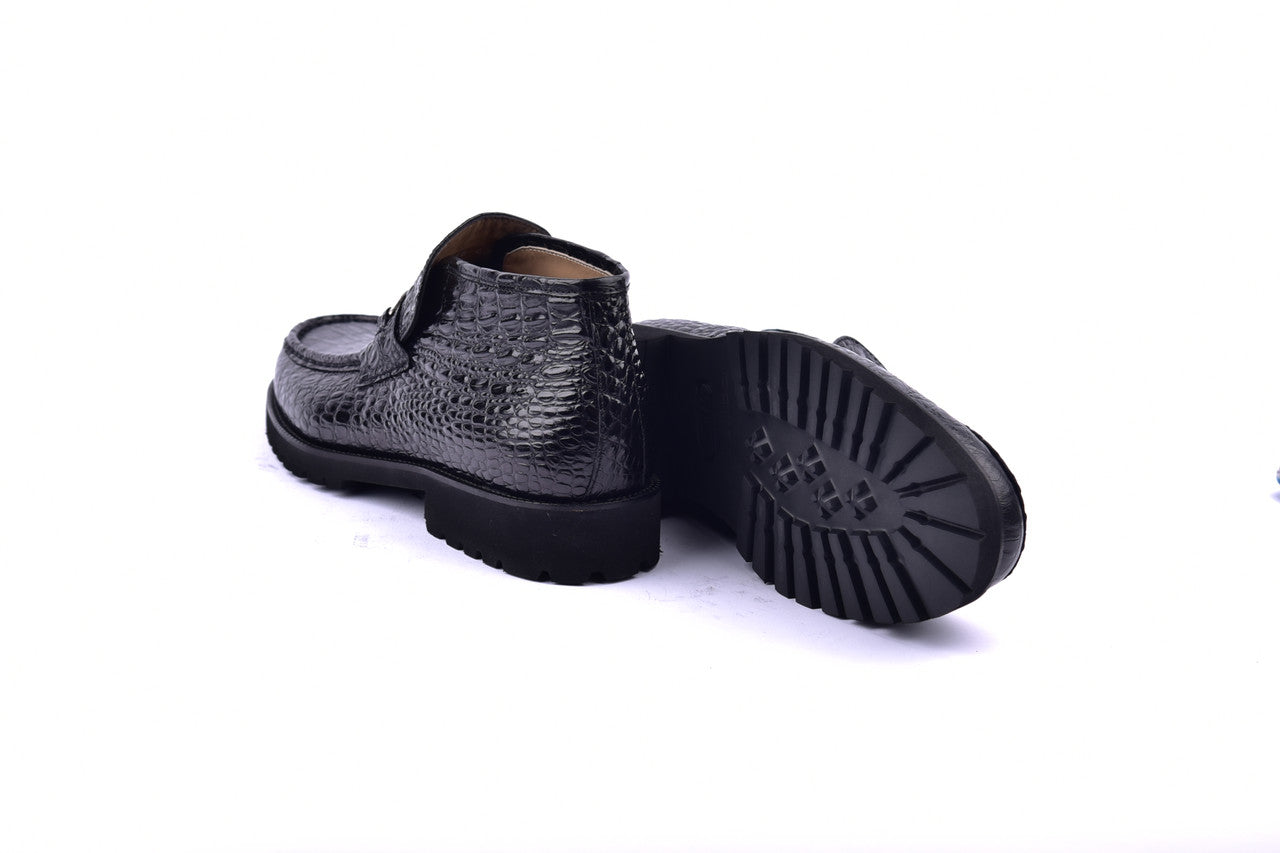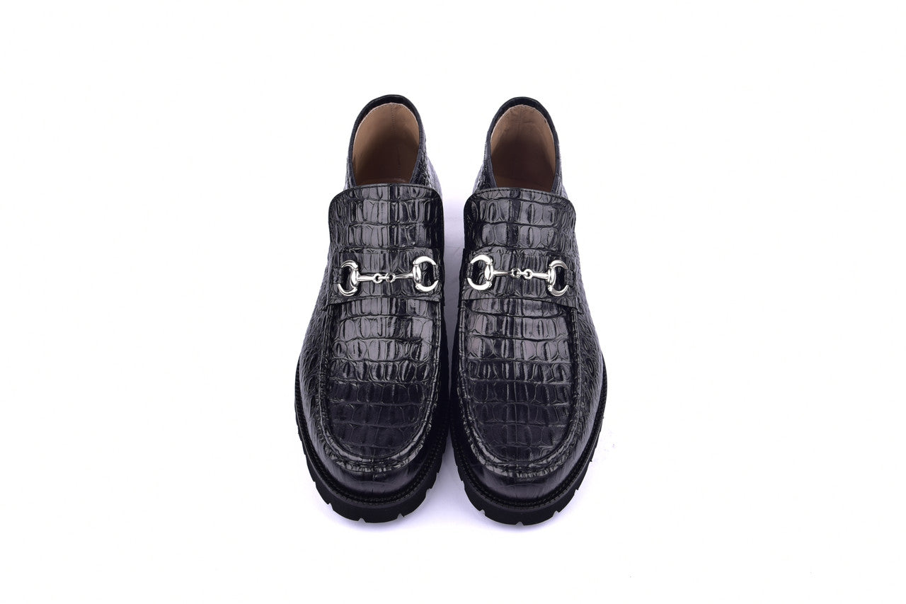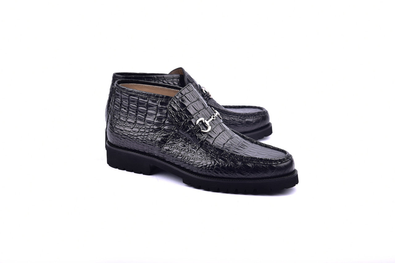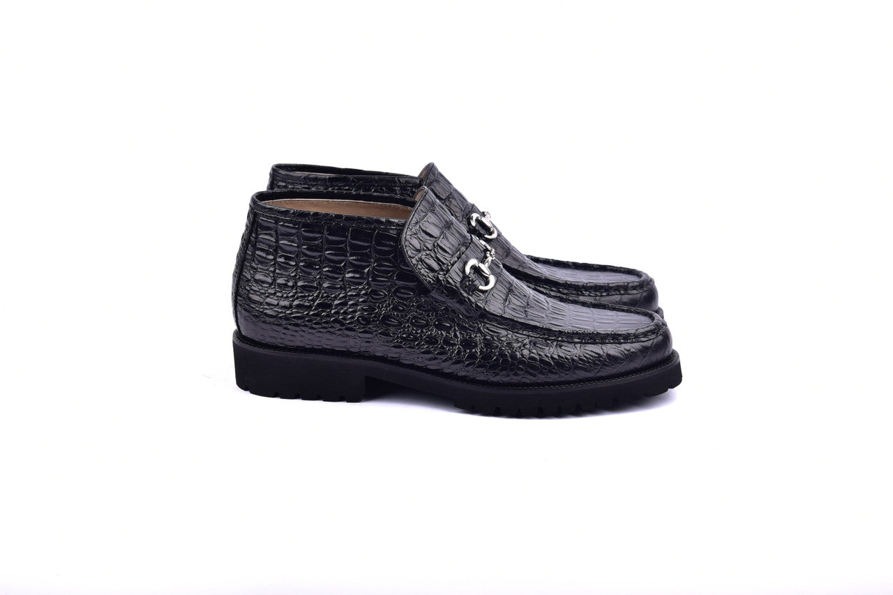 Italian Embossed Calf skin ankle boot - Silver Bit Buckle
