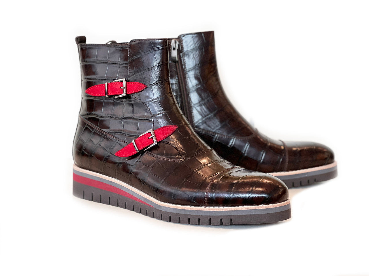 Elevate your style with the luxurious Corrente C0332-5784C Fashion Brown. Crafted with a sophisticated croco print, this boot features a side buckle design for a touch of elegance. Step out in fashion and comfort with this must-have addition to your wardrobe.
