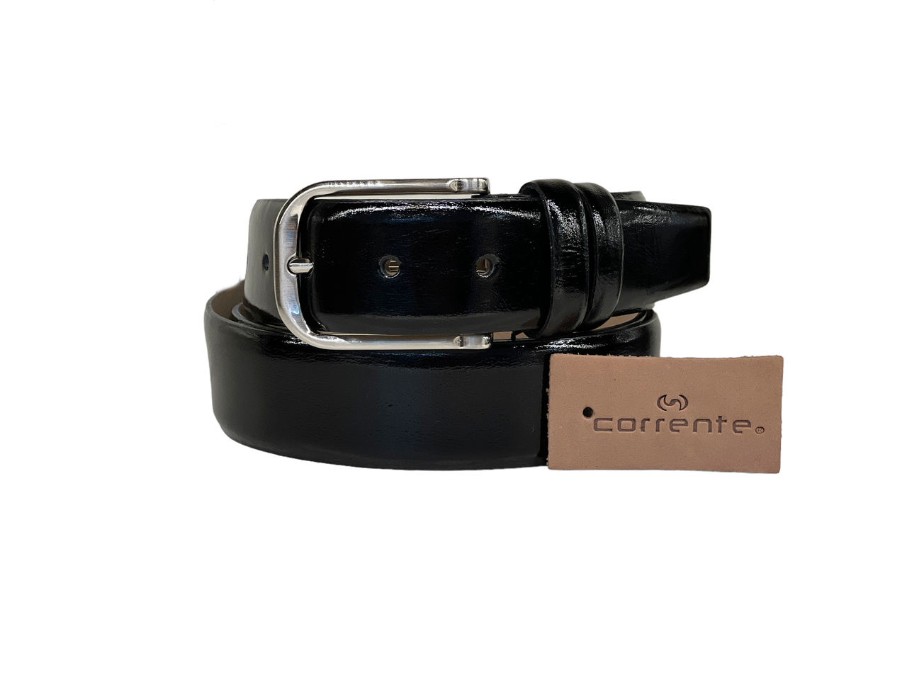 Corrente Men's Leather Belt - 5760 Shinny Black