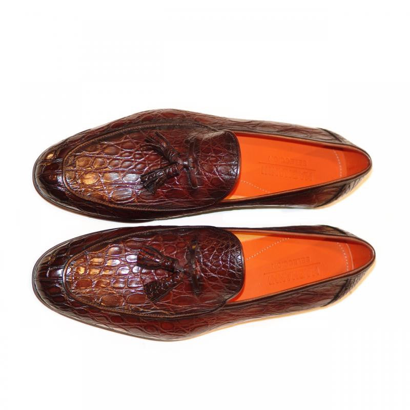 Magnanni Claudio Hand Burnished Antiqued Genuine Crocodile Brown