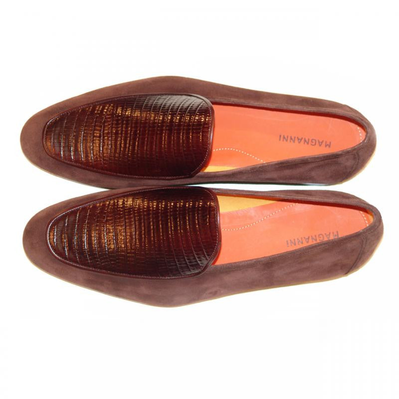 Magnanni Exclusive 6323 Lizard Vamp Suede Loafer Brown