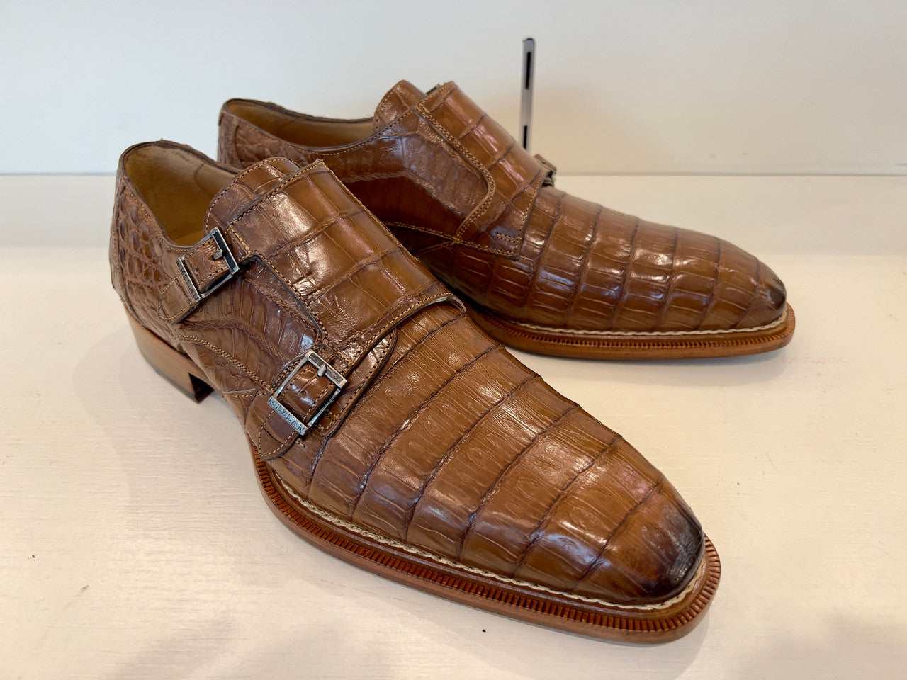 Mezlan Exclusive Prague Double Monk Strap Crocodile Camel