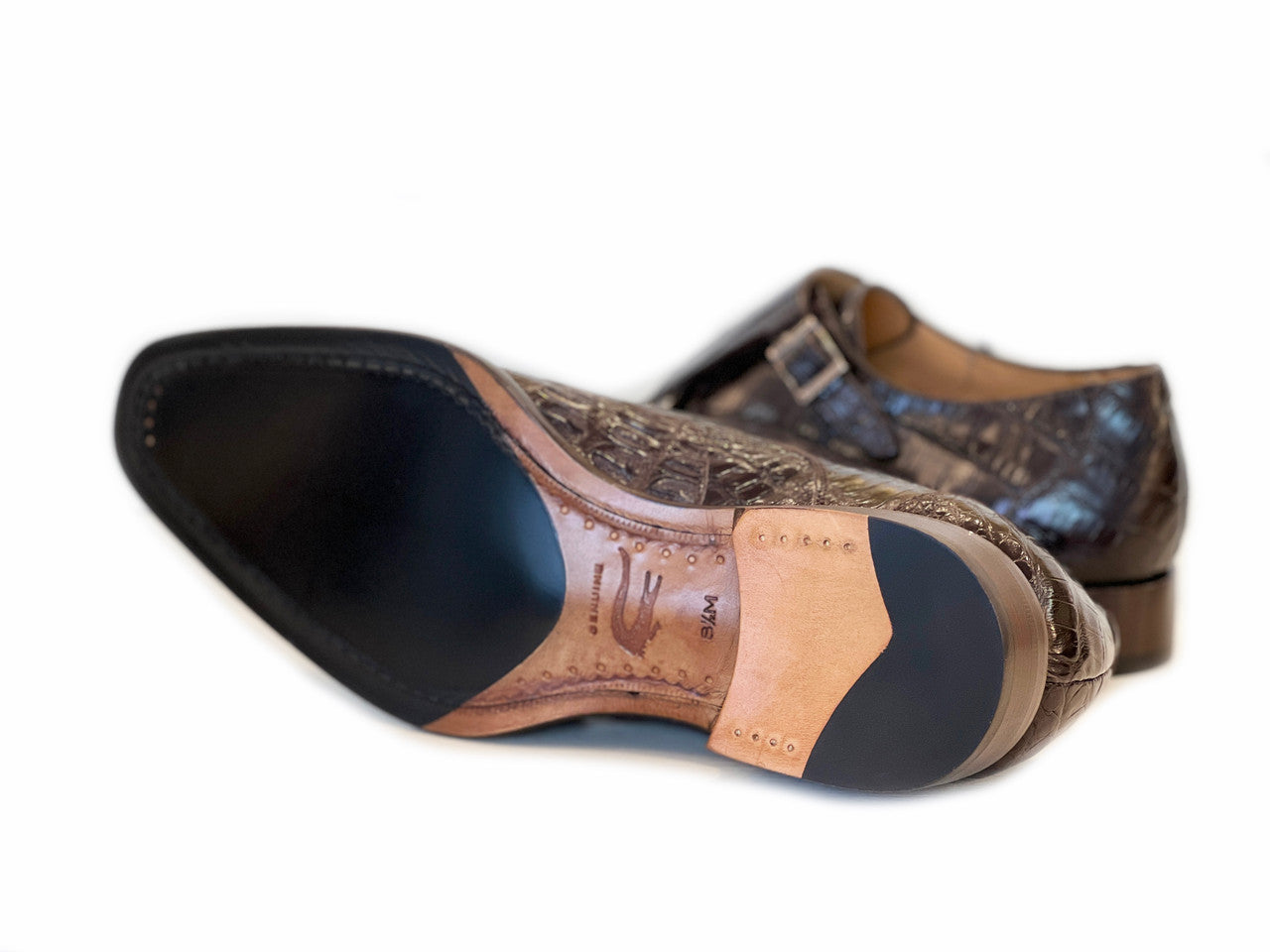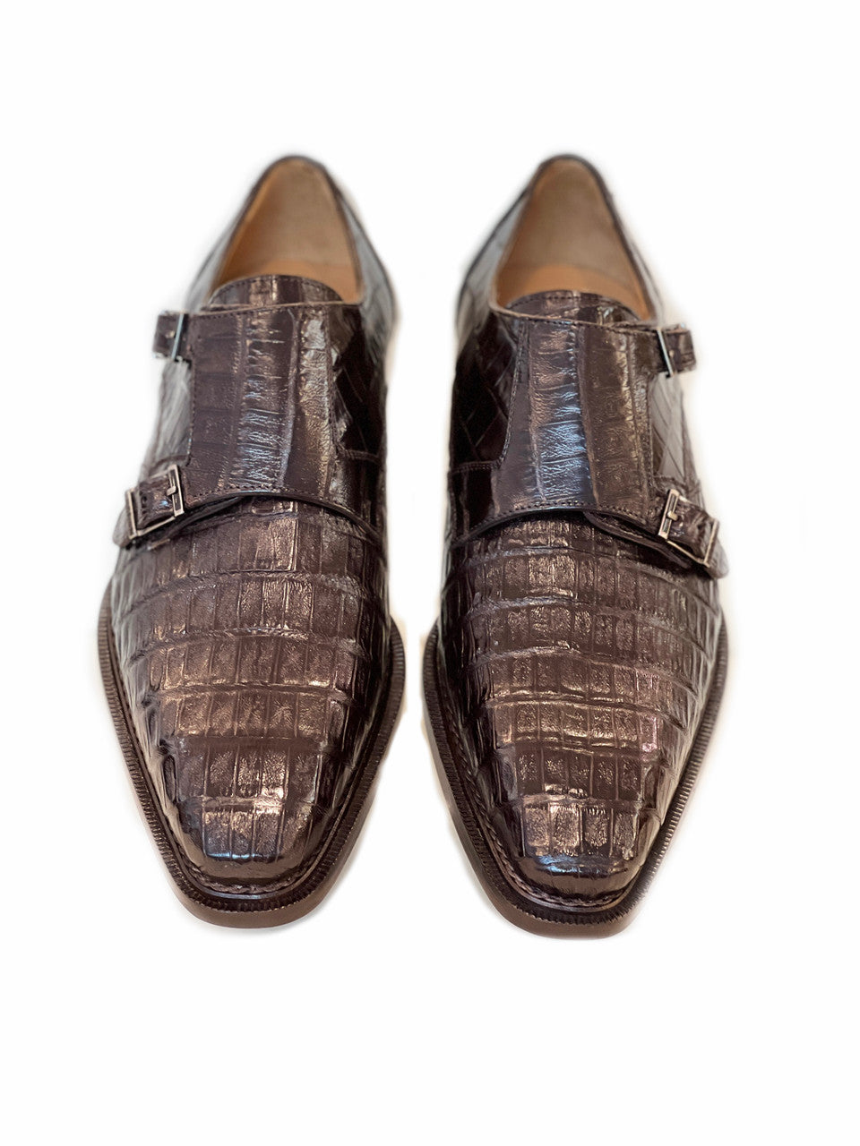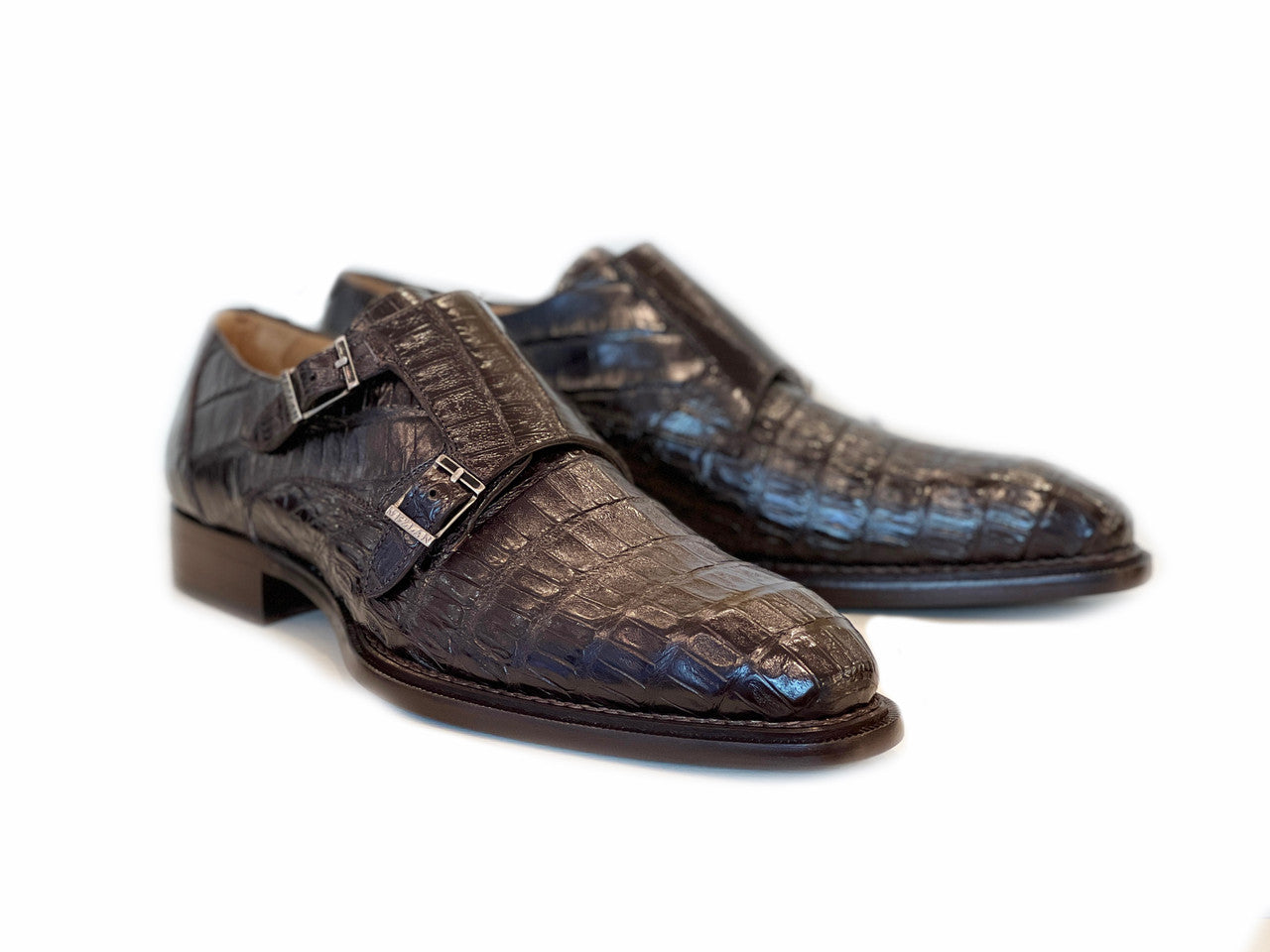 Mezlan Exclusive Prague Double Monk Strap Crocodile Dark Brown