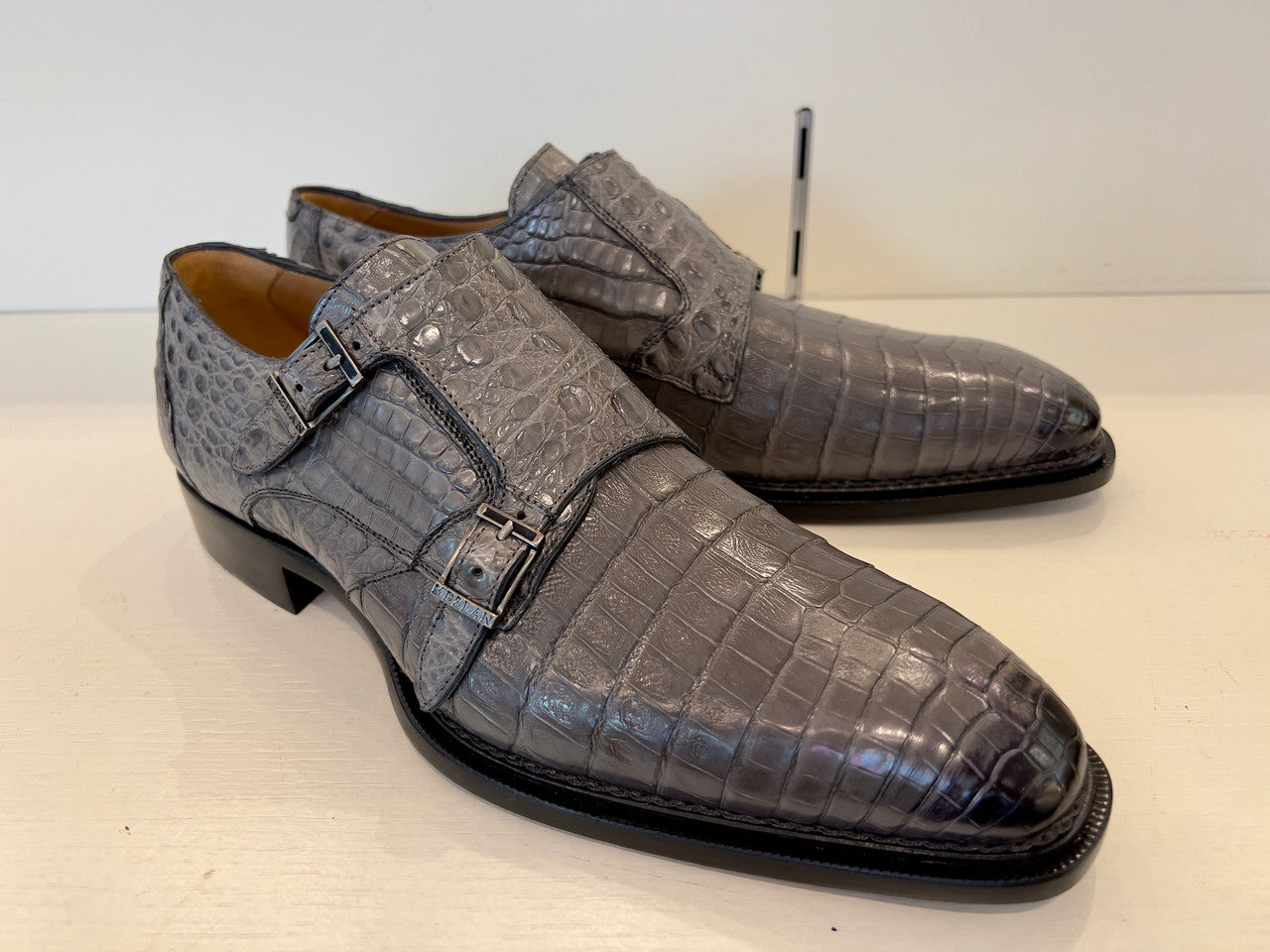 Mezlan Exclusive Prague Double Monk Strap Crocodile Pearl Grey