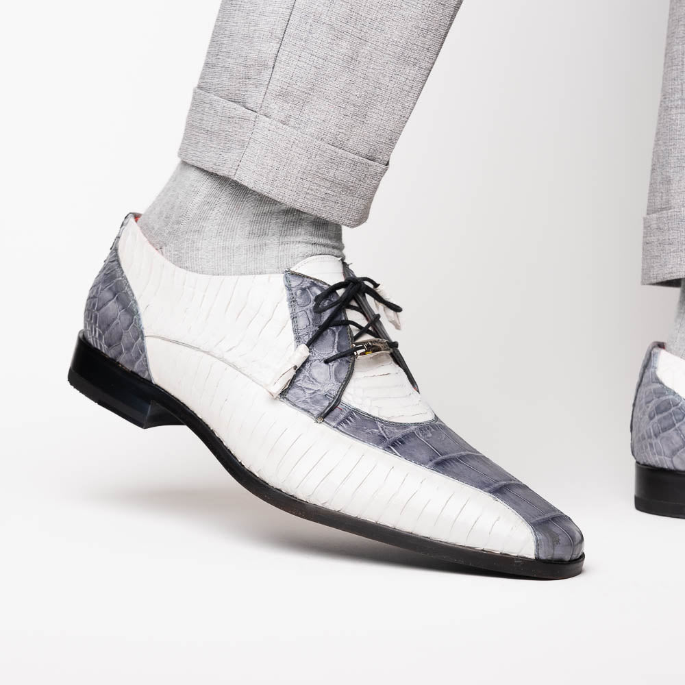 The MONCALIERI is our genuine alligator and cobra skin dress derby's featuring tasseled laces, and a polished hand finish that makes the texture pop. Pair these with your favorite dress-wear for a stunning look.