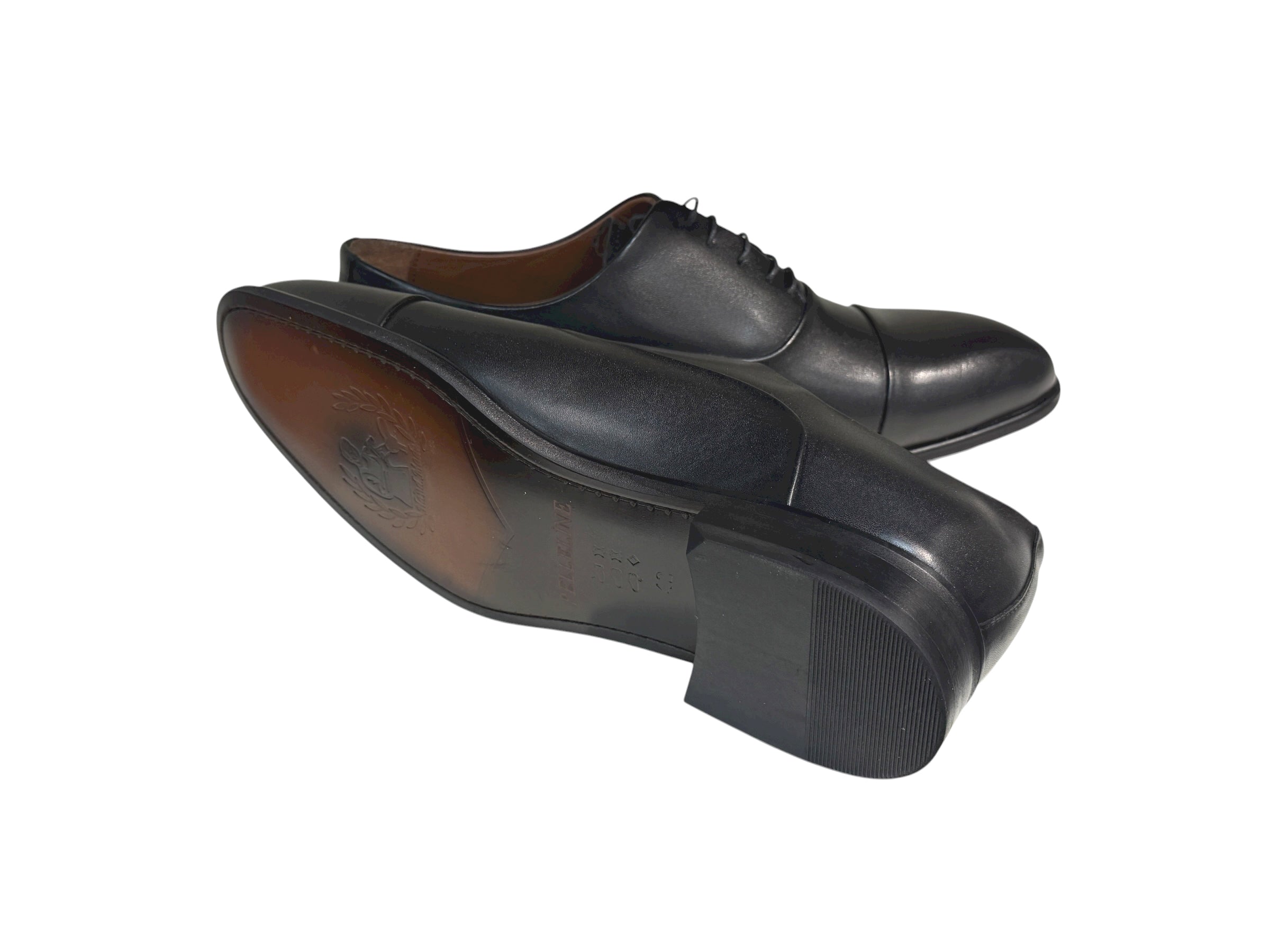The Paris Cap Toe combines timeless elegance with refined craftsmanship. Constructed from supple calf skin, this lace-up shoe features a distinctive cap toe design that adds subtle sophistication to any wardrobe. The premium leather develops a rich patina over time, while the secure lacing system ensures a customized fit. A versatile black finish pairs effortlessly with both formal and smart-casual ensembles, making this a distinguished addition to your shoe collection.