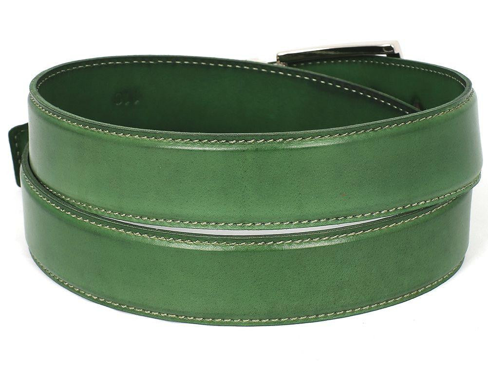 PAUL PARKMAN Men's Leather Belt Hand-Painted Green (ID#B01-LGRN)
