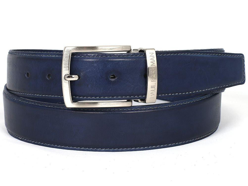 PAUL PARKMAN Men's Leather Belt Hand-Painted Navy (ID#B01-NVY)