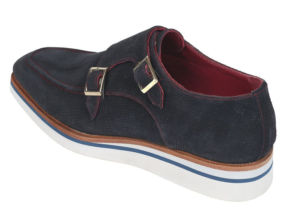 Paul Parkman Men's Smart Casual Monkstrap Shoes Navy Suede (ID#189-NVY-SD)