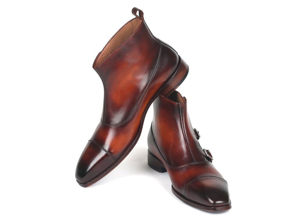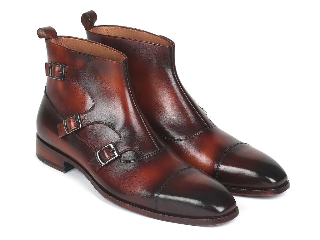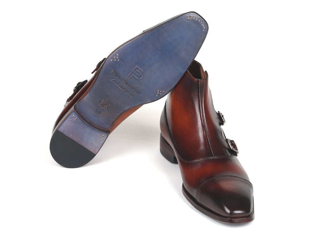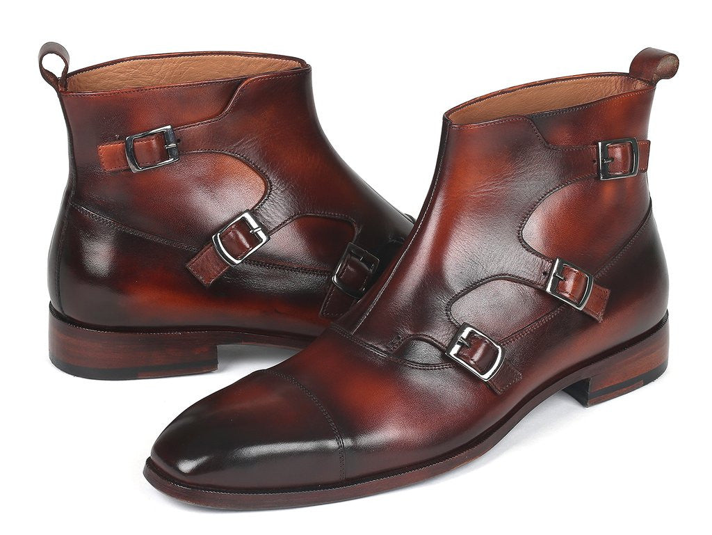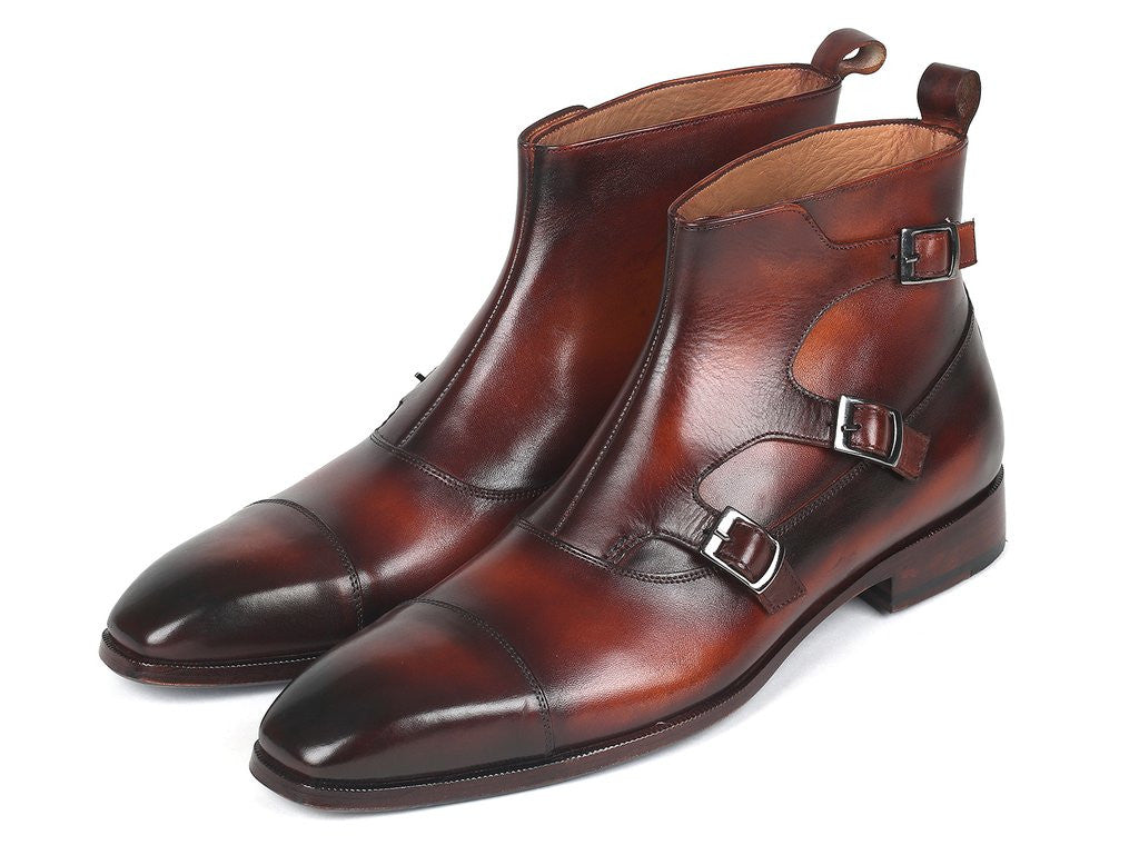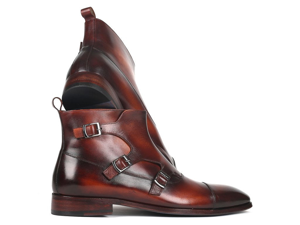 Paul Parkman Triple Monkstrap Boots Brown Leather (ID#88951-BRW)