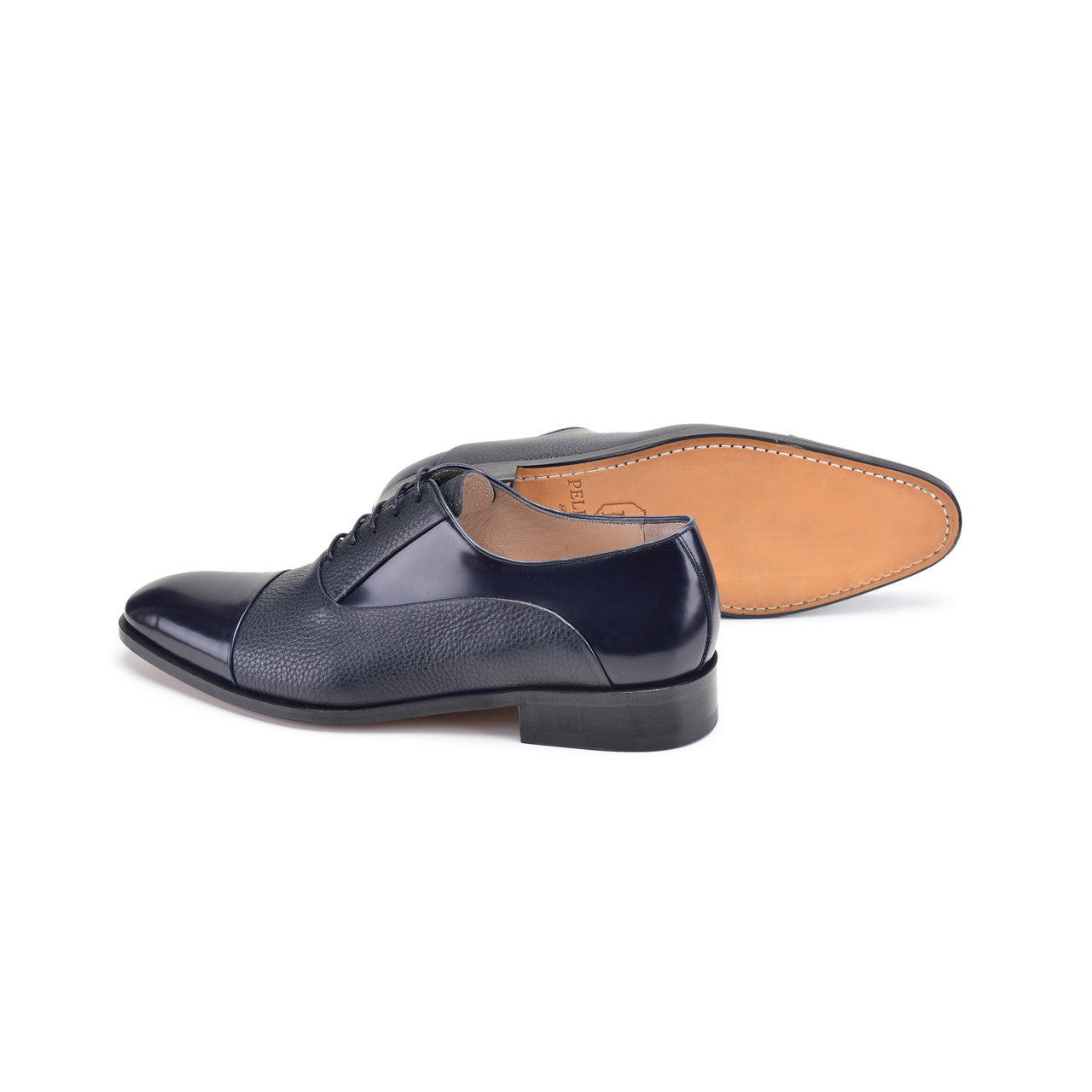 Pelle Line- Bryan Cap toe deer skin lace up- Navy