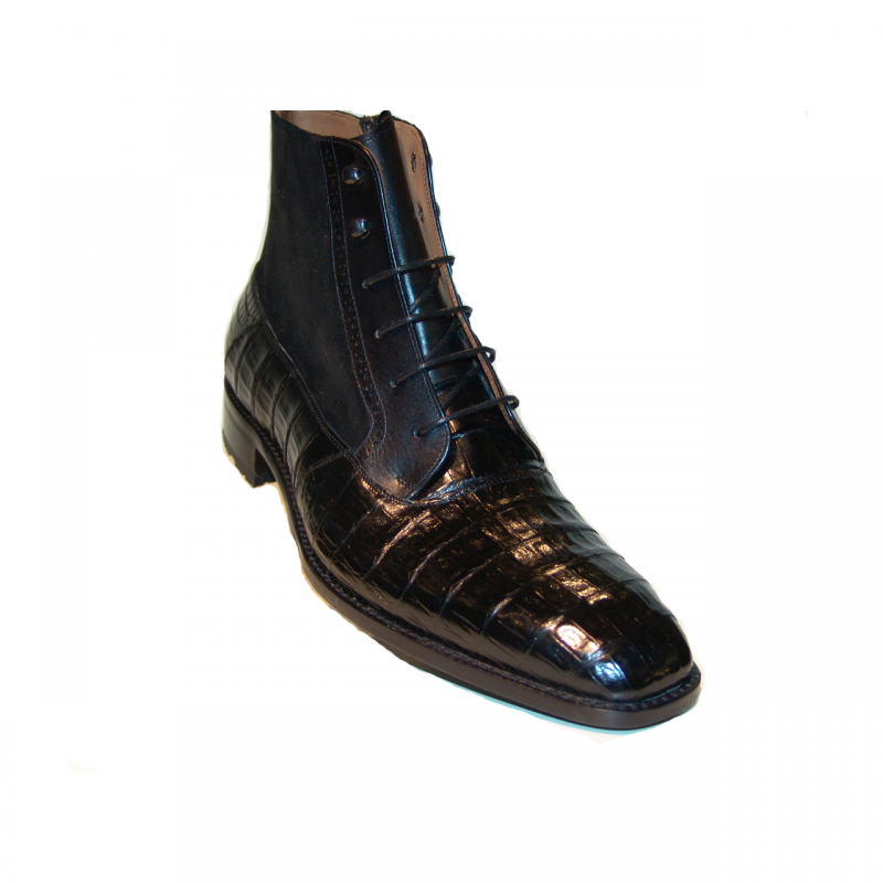 Pelle Line Exclisive Mezlan, Molino Alligator and Suede Laceup Boot Black