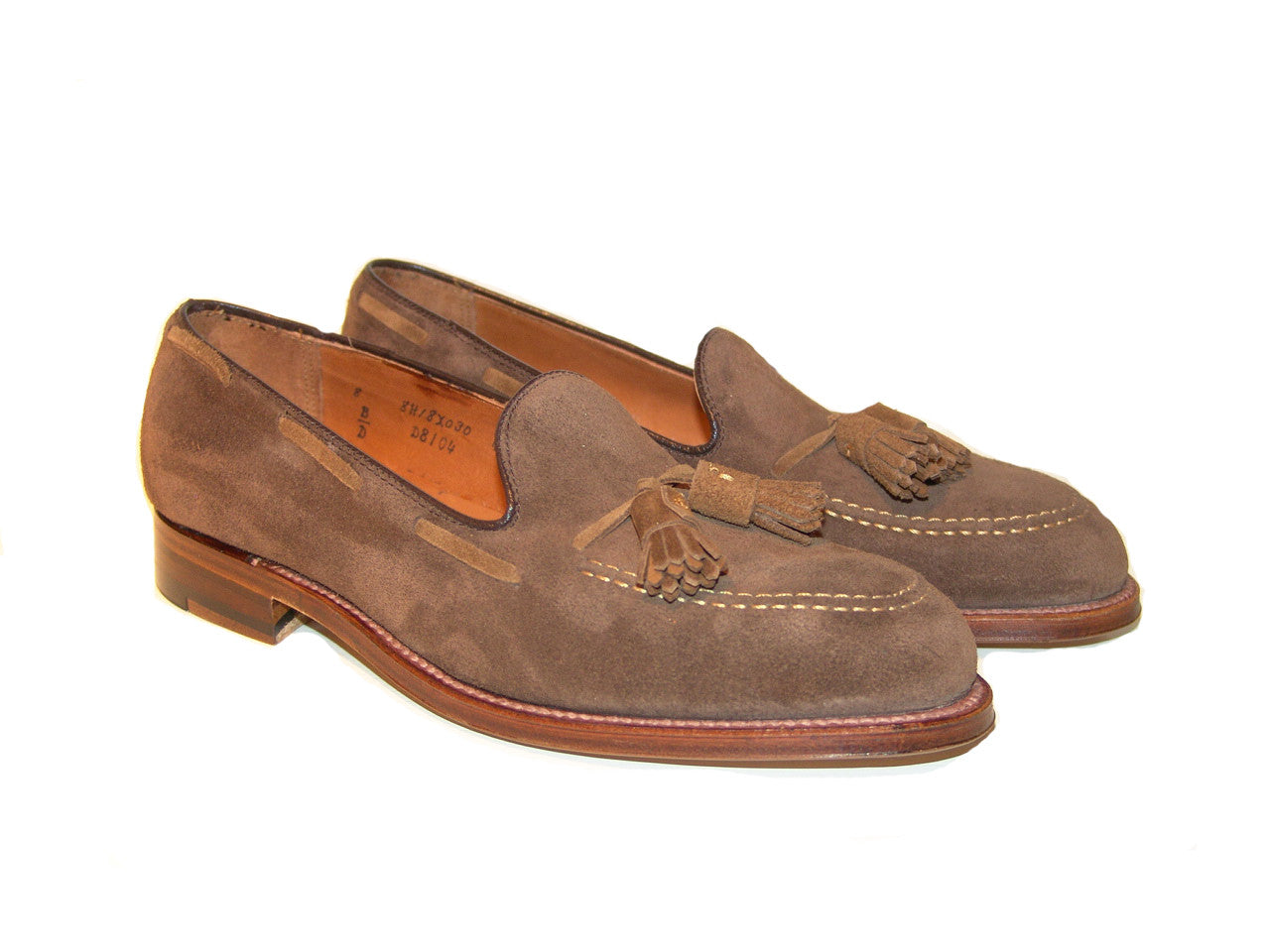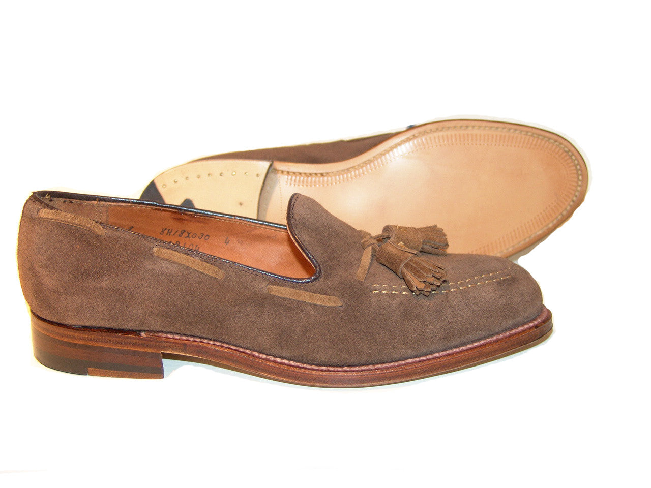 Beautiful new Alden Suede tassel two tone with full leather sole, Aberdeen last