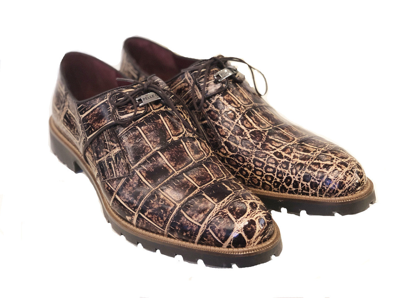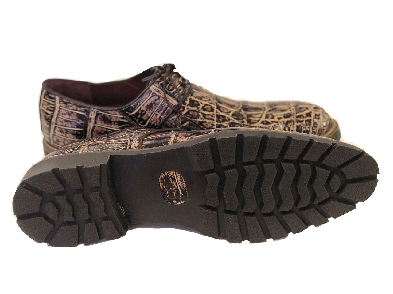 Pelle Line Exclusive Cosi- Burnished alligator Lace up -Beige -Brown