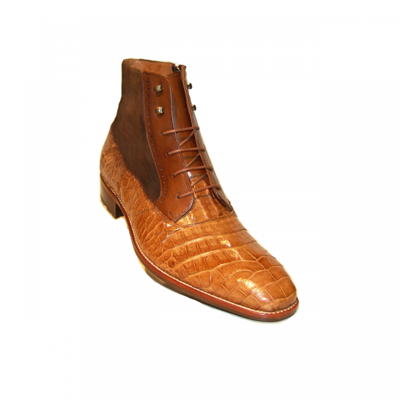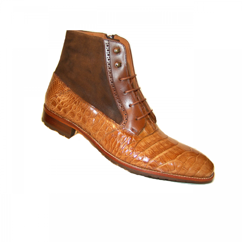 Pelle Line Exclusive Mezlan, Molino Alligator and Suede Laceup Boot Camel