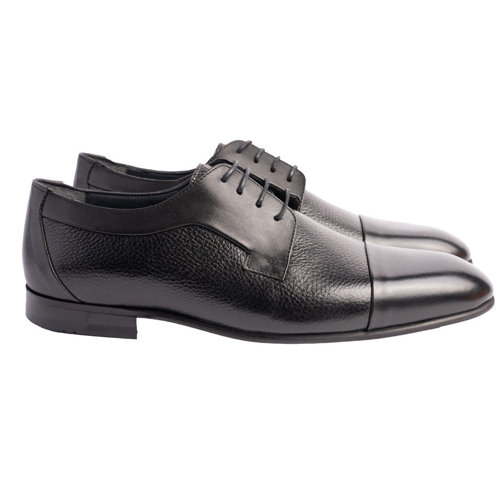 Pelle Line Mark Deer skin cap toe Lace Up- Black