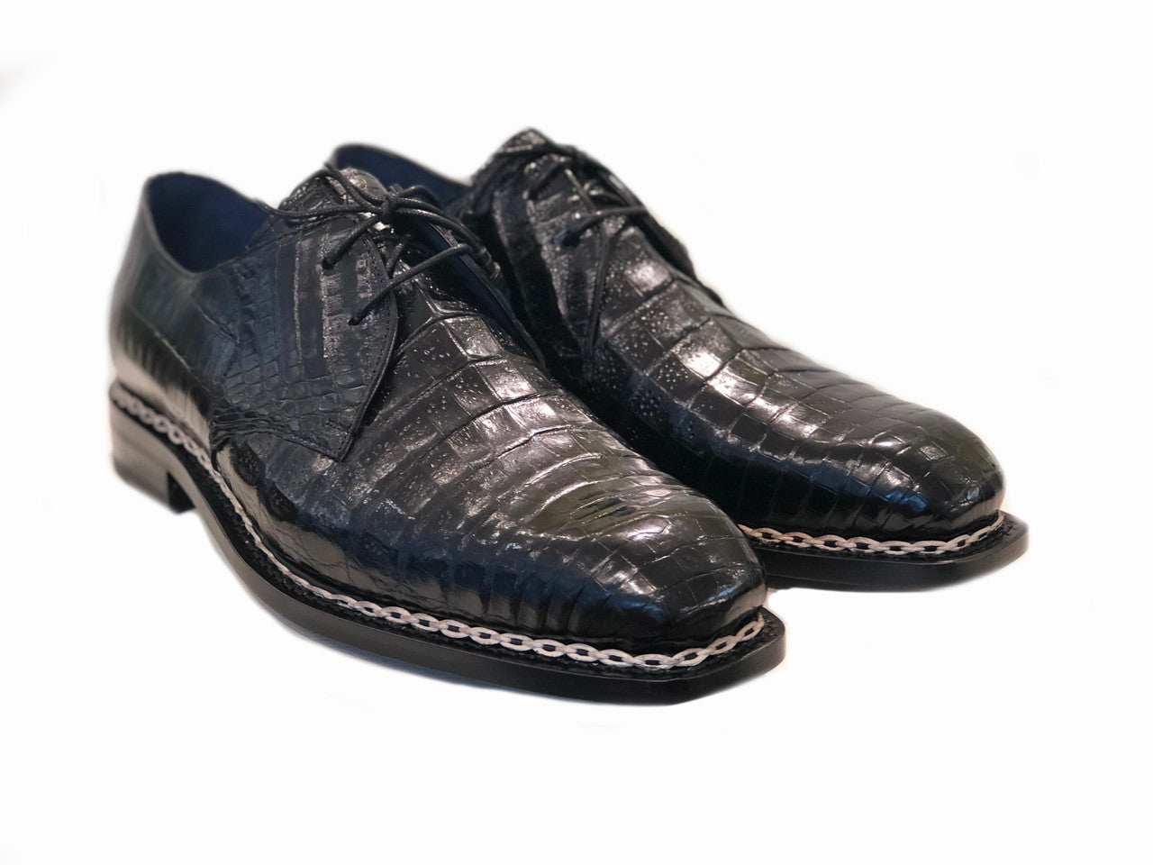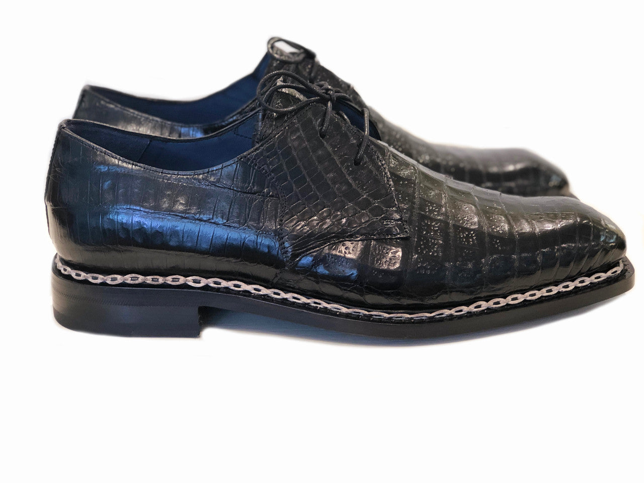 Genuine Alligator Blucher lace up, With Heavy chain stitch welt, Full leather sole